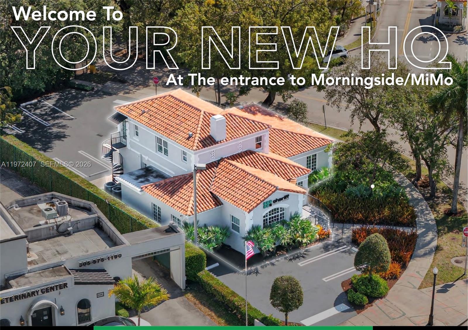 True Morningside office setting. Rare opportunity to lease a 3,055 SF standalone commercial building at the entrance to one of Miami’s most desirable residential neighborhoods. Properties like this almost never become available. Landmark corner location on Biscayne Boulevard with exposure to approximately 75,000 cars per day, offering powerful branding and signage visibility, while the opposite side of the property opens into the quiet, tree-lined residential character of Morningside. Fully built out with high-end finishes throughout, including a glass conference room, executive offices, open workspace, reception, kitchen, restrooms, and on-site parking. Refined, polished interior that presents well above typical office inventory. Ideal for a boutique professional firm, family office, creative studio, or executive headquarters seeking quality and distinction. Walk, bike, or commute from nearby Morningside, Bay Point, Belle Meade, or Upper East Side residences. A rare opportunity to operate within a residential community while maintaining strong commercial presence on US-1. Turnkey condition. NNN lease structure. Showings by appointment only.